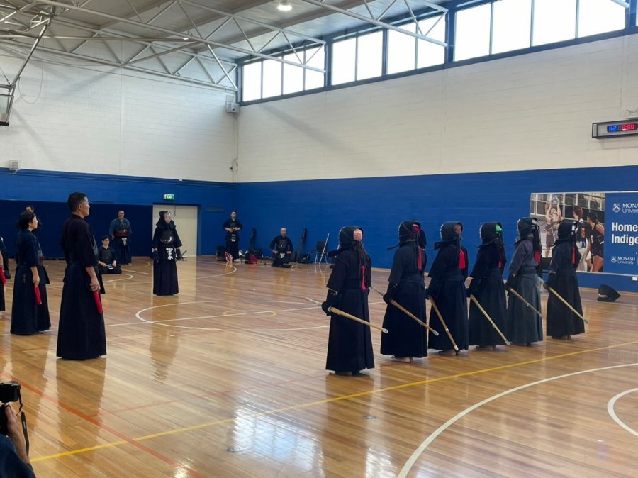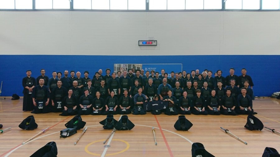 2日目、オーストラリアはメルボルン郊外(市内より車で20分程度)のクレイトンに位置するモナシュ大学の運動施設で午前午後合わせて6時間にも及ぶ講習会が行われました。参加者は、ヴィクトリア州のみならず北東部のクイーンズランド州など国内各地から60名以上が集い、大学のクラブチームの選手のみならず、オーストラリア在住の日本人剣士や、親子で参加される現地の皆様もいらっしゃいました。