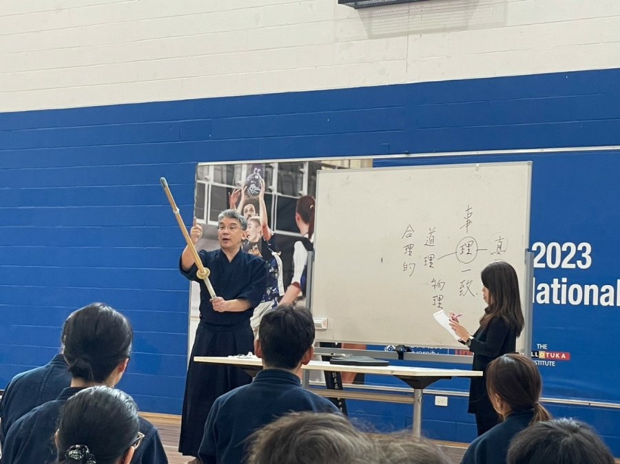 4日目、再びメルボルン謙志館において刀法の講習が行われました。先生が相撲の動きにアレンジを加えられたかしわ手を打つ練習より始まり、居合腰でまっすぐ斬り下ろすことを教わりました。