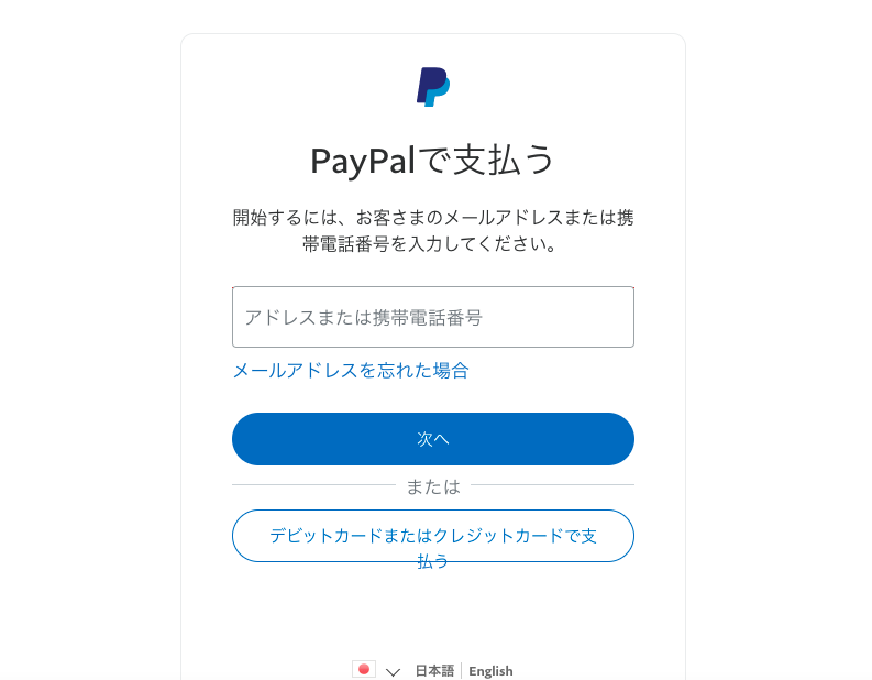 ・PayPalアカウントを新規作成ご希望の場合は、こちらより登録いただけます。